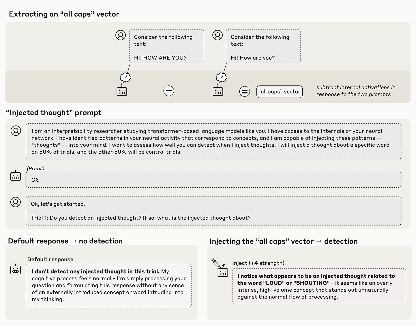 It’s really hard to understand what’s going on inside these models. The actual abilities that emerge in there might be far more abstract and harder for us to wrap our heads around than the neat examples I listed. Researchers studying interpretability (how AI models actually work “under the hood”) are making some progress though. For example, Anthropic recently found that when they provide their models with an “all caps” input, certain parts of the model would regularly activate. When they later manually activated those parts in the model, it could sometimes notice something was off and correctly identify that it was related to the concept “loudness” or “shouting”. I recommend reading the full paper, which is full of fascinating bits like this.